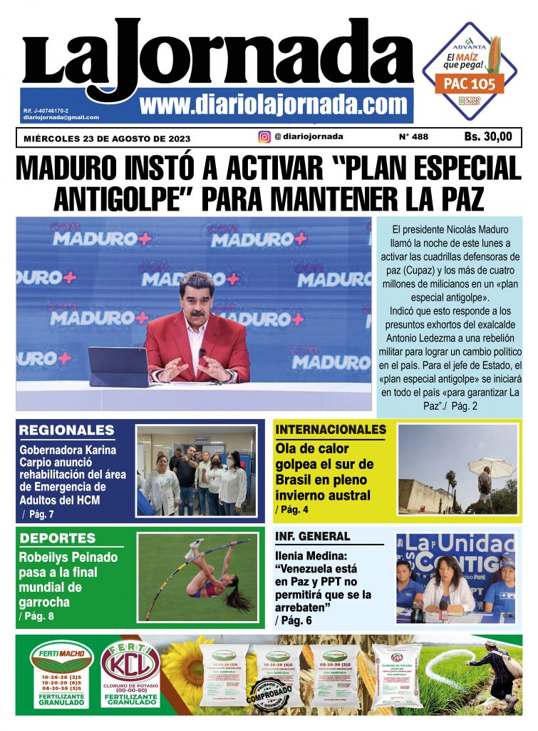Portada Diario La Jornada 23/08/2023