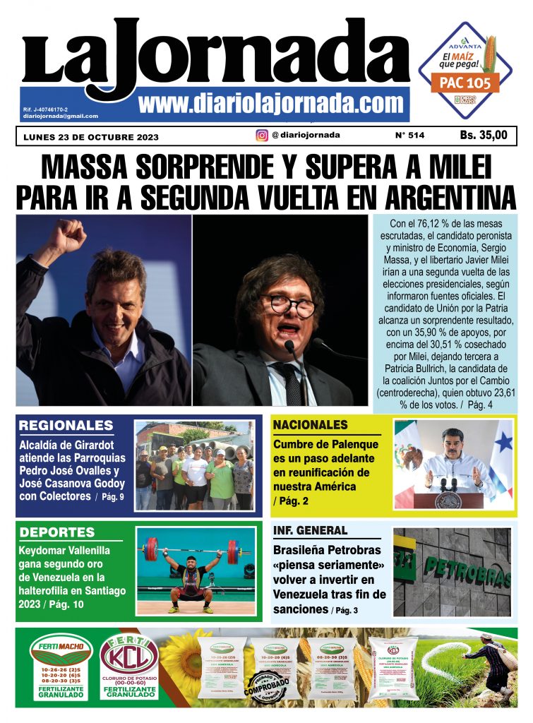 @diariojornada Con el 76,12 % de las mesas escrutadas, el candidato peronista y ministro de Economía, Sergio Massa, y el libertario Javier Milei irían a una segunda vuelta de las elecciones presidenciales, según informaron fuentes oficiales. El candidato de Unión por la Patria alcanza un sorprendente resultado, con un 35,90 % de apoyos, por encima […]