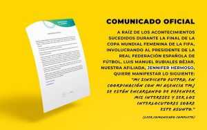 “Mi sindicato FUTPRO, en coordinación con mi agencia TMJ, se están encargando de defender mis intereses y ser los interlocutores sobre este asunto”, afirmó la jugadora en comunicado del sindicato Futpro.