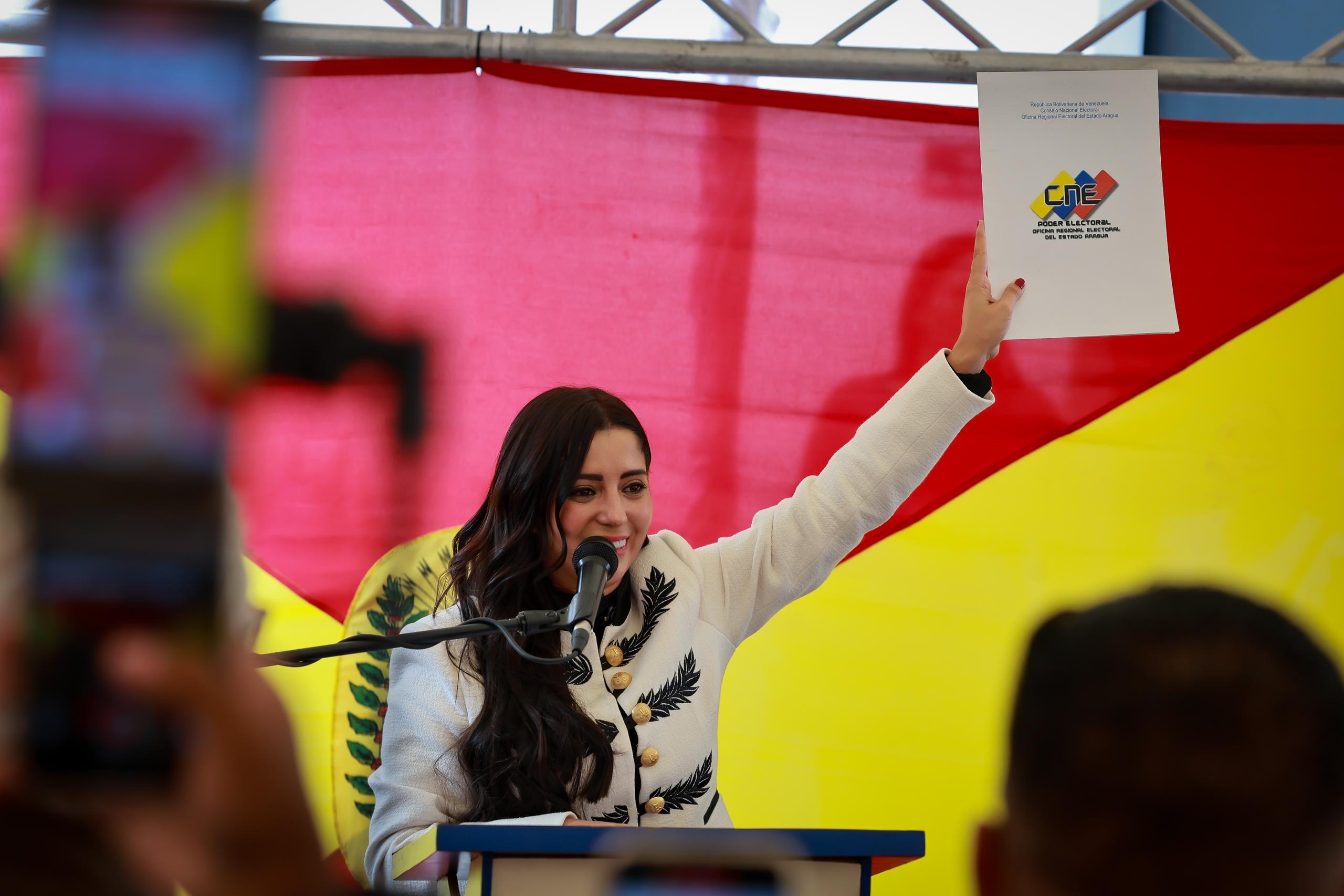 En un acto celebrado en la sede regional del Consejo Nacional Electoral (CNE), Joana Sánchez fue oficialmente acreditada como gobernadora del estado bolivariano de Aragua,